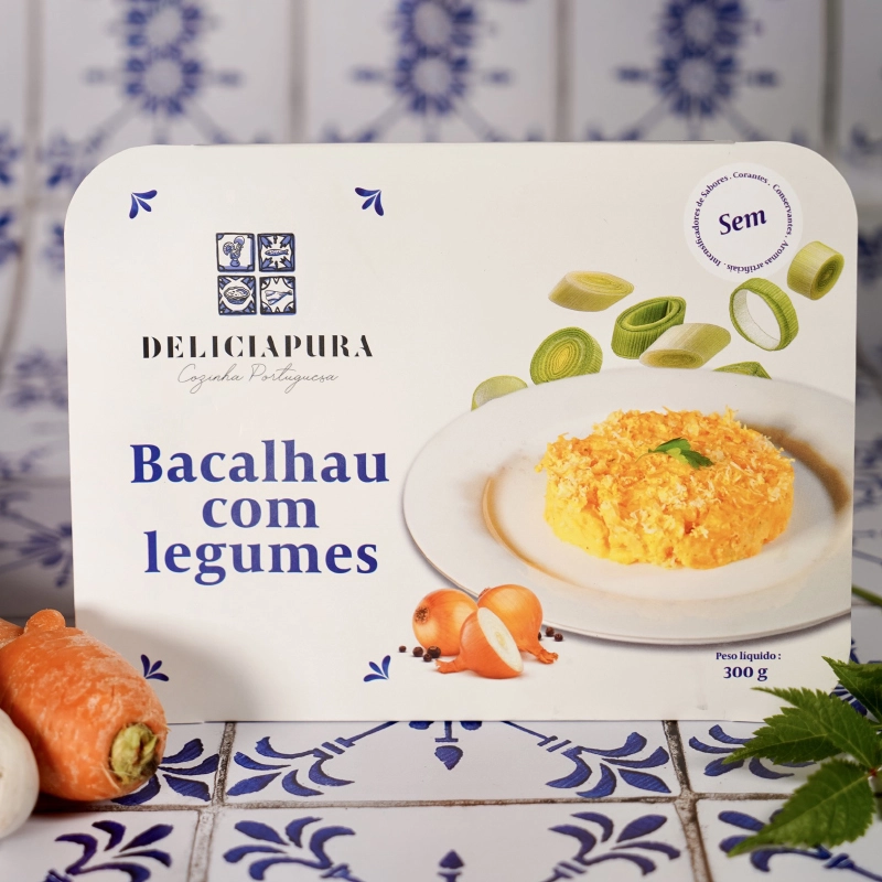 Dose individual com 300g de Bacalhau com Legumes – ultracongelado.