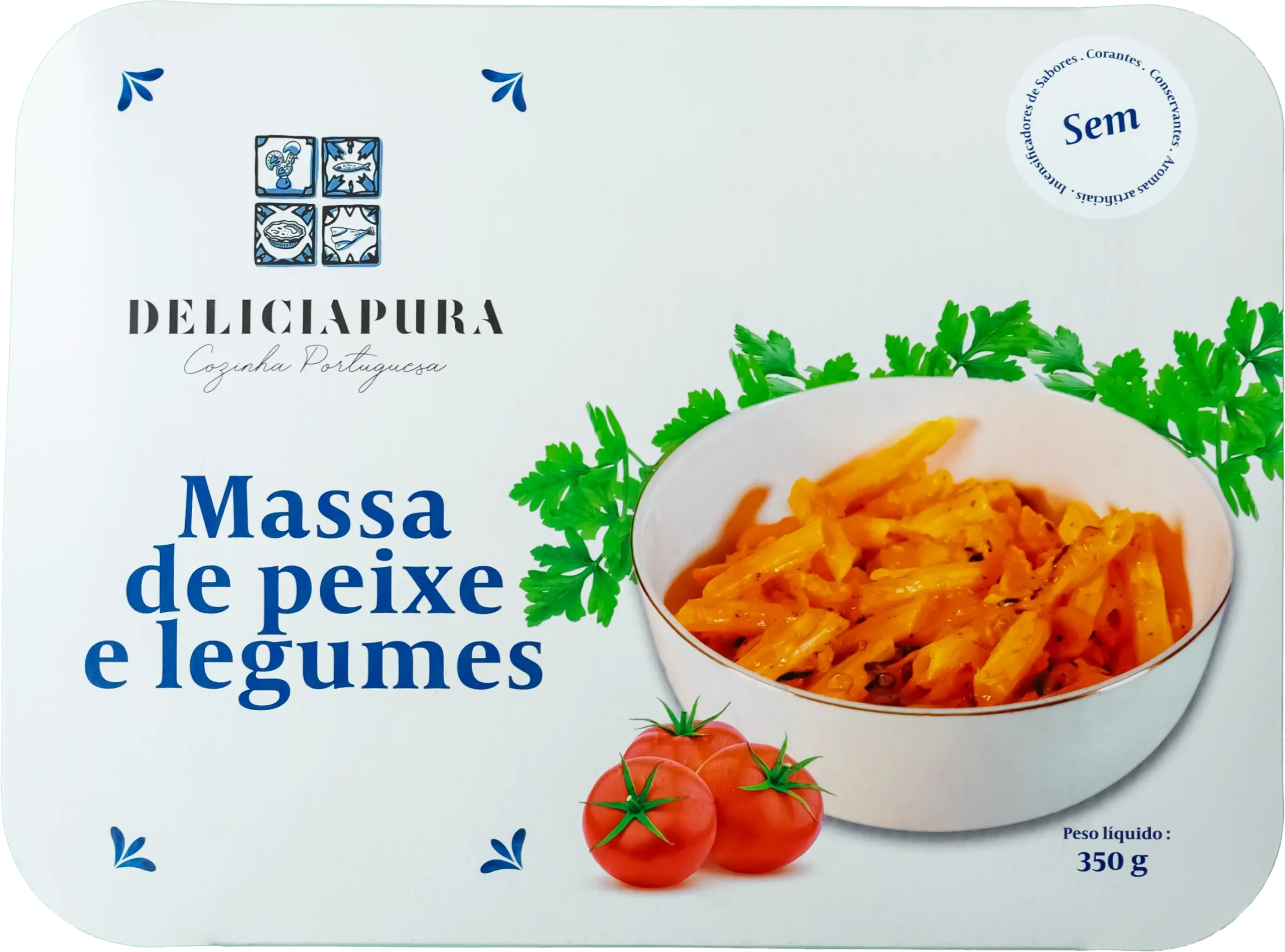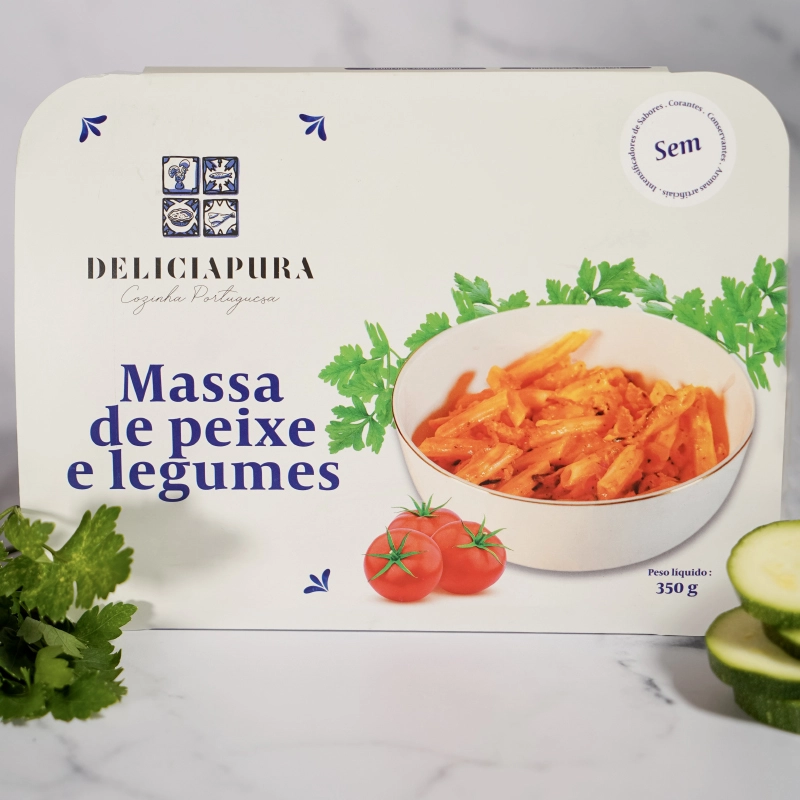 Dose individual com 350g de Massa de Peixe e Legumes – ultracongelado.